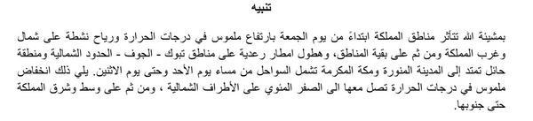 الرئاسة العامة للارصاد تصدر تقرير تنبيهي اخر لحالة عدم الاستقرار المتوقعه بمشيئة الله ابتداءا من اليوم https://pbs.twimg.com/media/BBabQVSCUAE11LU.jpg:large |