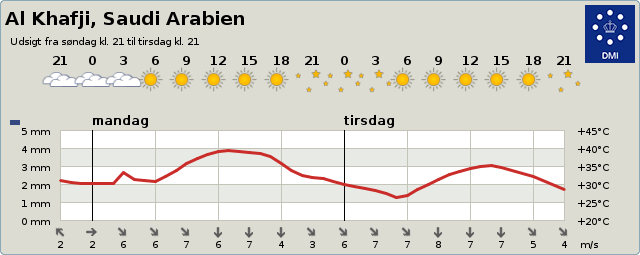 Verdensvejr 2-døgnsudsigt https://servlet.dmi.dk/byvejr/servlet...80&mode=dag1_2 توقعات الخفجي جميله جداُّ يوم الغد بإذن الله |