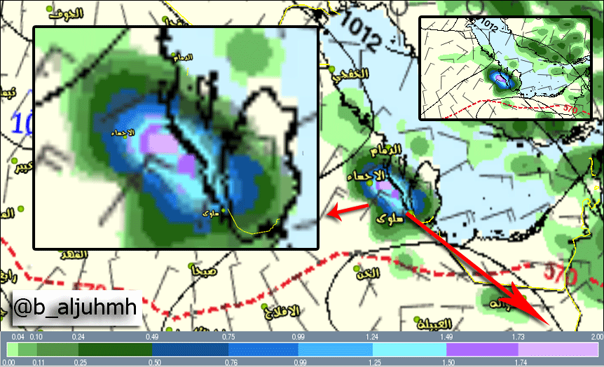 https://up.albrari.com/uploads/13956921511.png ^ ^ مؤشر الرفع الكاب الداعم لنشاط العواصف الرعدية ليوم الاربعاء بمشيئة الله https://up.albrari.com/uploads/13956921512.png https://up.albrari.com/uploads/13956921513.png ^ ^ توقعات الامطار اللحظية عالية الدقة في مساء الاربعاء وحتى ساعات فجر الخميس https://up.albrari.com/uploads/13956921514.png ^ ^ الامطار التراكمية ولمدة اسبوع ............. بناءً على نماذج التنبؤات الموضحة بالمرصد الامريكي اعلاه فأنه متوقع وبمشيئة الله امطار غزيرة تكون مصحوبة بعواصف رعدية وذلك على منطقة الاحساء وقطر في مساء يوم الاربعاء وتستمر حتى ساعات صباح الخميس وتتأثر لاحقاً دولتي الامارات وسلطنة عُمان بهطول امطار غزيرة تُصحب بعواصف رعدية ونشاط بالرياح السطحية المثيرة للاتربة والغبار ........ تنبيهات يرجى الابتعاد عن اماكن تجمع مياه الامطار والسيول وعلى المسافرين من والى الاحساء قطر الامارات سلطنة عمان يوم الاربعاء والخميس والجمعه بأخذ الحيطة والحذر |
