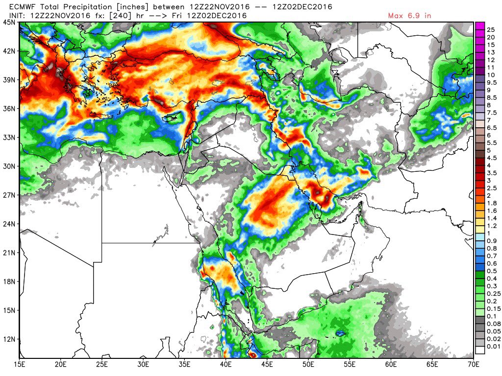 ندرج لكم تحديث الاوربي الان ونلاحظ انعدام الامطار على العراق خلال هذه الحالة