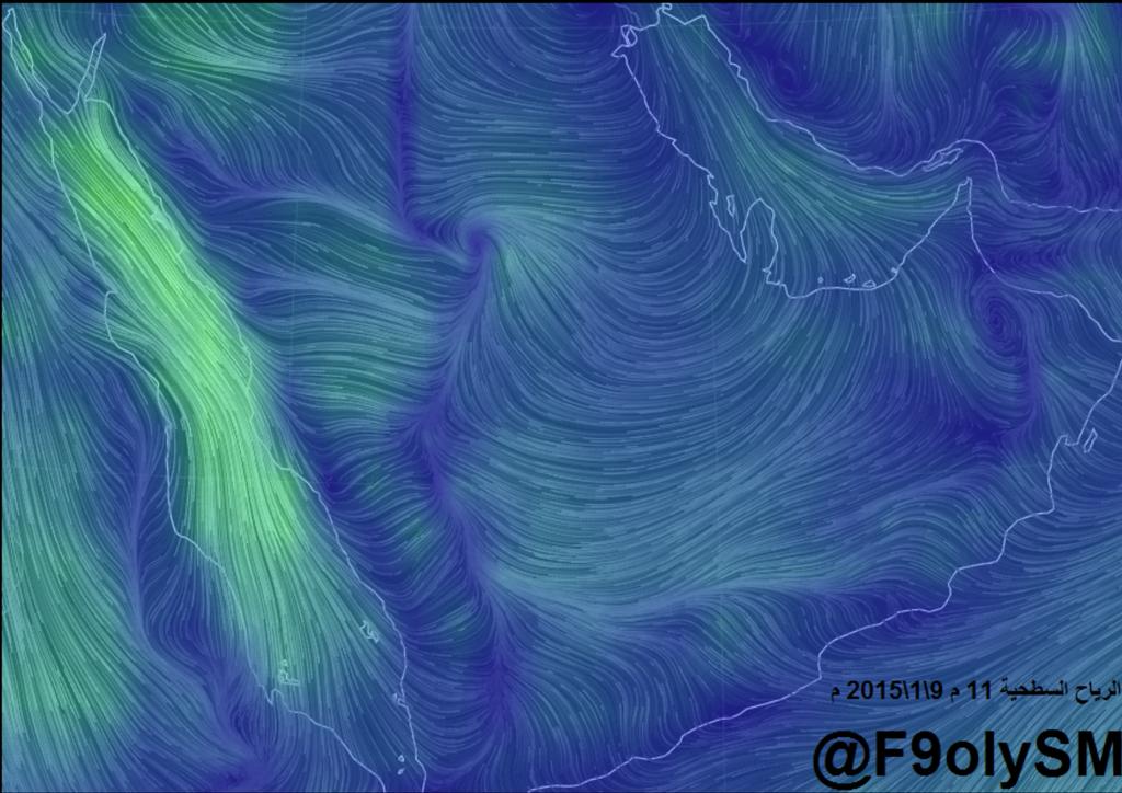 تتباين درجات الحرارة فتتابين الضغوط فيرتفع شمالاً وينخفض جنوب وجنوب شرق وشرق المملكة بذلك تنشط الرياح السطحية حاملةً معها الغبار بشكل شبه كثيف من بعد ظهيرة اليوم بإذن الله على المناطق الموضحة في الصورة : https://pbs.twimg.com/media/B68ZggvCAAErk_m.png .. |