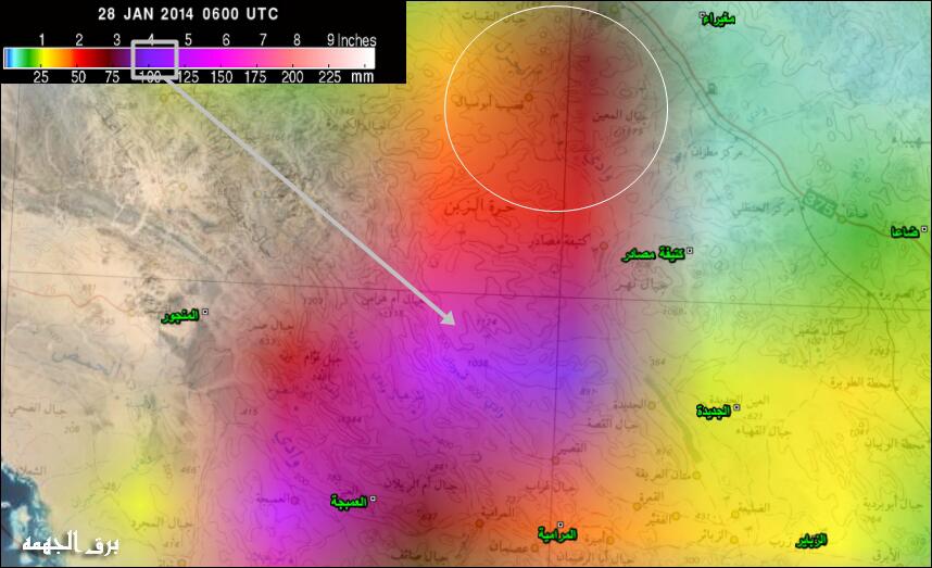 على ينبع ٢٨ ملم حسب مرصد المطار فلله الحمد والشكر |