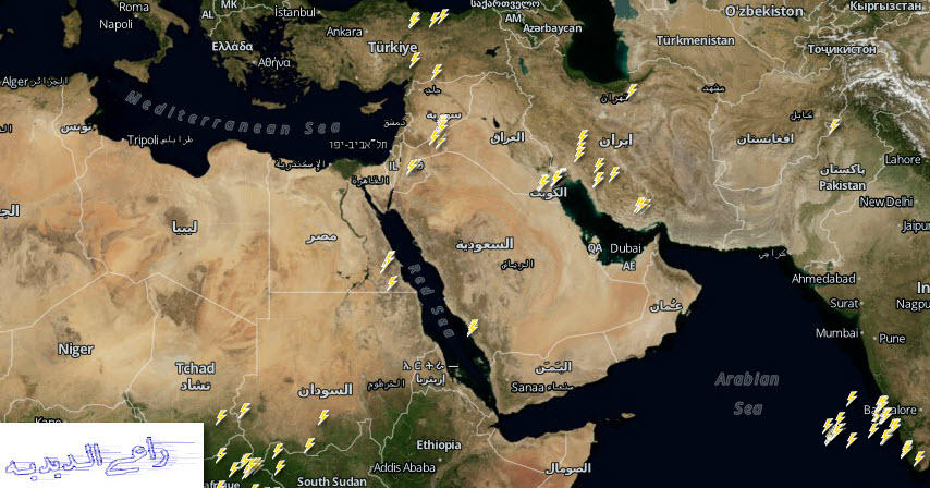 اهلا بكم.الامطار مع بروق قويه الان حاضره في مناطق مختلفه من جنوب غرب ايران