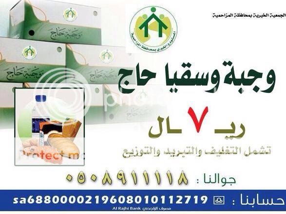 بسم الله الرحمن الرحيم أطعم ضيوف الرحمن واغتنم فضل الزمان والمكان وأكرم وفادة ضيوف الرحمن ================== أولا : وجبة حاج التابع لجمعية البر بالمزاحمية ================== الوجبة ب 7 ريال فقط تطعم وتسقي حاج https://i814.photobucket.com/albums/z...6.jpg~original للإتصال والإستفسار / 0508911118 للتبرع في حساب المشروع في مصرف الراجحي ( حساب رسمي وسيخرج لك أسم الجمعية على شاشة الصراف ) 219608010112719 وللتبرع من اي بنك آخر هذا هو ( الايبان ) SA6880000219608010112719 ================== ثانيا : وجبة حاج يوم عرفة التابع للمكتب التعاوني للدعوة والإرشاد ودعوة الجاليات براس تنورة ================== مشروع وجبات يوم عرفة داخل المشاعر المقدسة في فلايفوتك إطعام الحجاج وسقايتهم في يوم عرفة حيث الأجور مضاعفة الوجبة ب 8 ريال فقط تطعم وتسقي حاج توزيع الوجبات سيكون بإذن الله يوم عرفة حيث الأجور مضاعفة بإذن الله https://www.traidnt.net/vb/images/img...2014/10/55.jpg للإتصال والإستفسار / 0558199011 للتبرع في حساب المشروع في مصرف الراجحي ( حساب رسمي بإسم مكتب الجاليات وسيخرج لك أسمهم على شاشة الصراف ) 183608010000148 وللتبرع من اي بنك آخر هذا هو ( الايبان ) SA908000018360801000 0148 ================== ثالثا : وجبة حاج التابع للمكتب التعاوني للدعوة والإرشاد ودعوة الجاليات بجنوب الدمام (غراس) ================== الوجبة ب 10 ريال فقط تطعم وتسقي حاج https://i814.photobucket.com/albums/z..._.jpg~original للأتصال والأستفسار / جوال / 0556670505 جوال / 0502245566 للتبرع في حساب المشروع في مصرف الراجحي (حساب رسمي باسم المكتب وسيخرج لك أسم الجاليات على شاشة الصراف) 104608014300706 وللتبرع من أي بنك آخر ( الآيبان ) SA8580000104608014300706 ================== رابعا : وجبة حاج التابع لجمعية نماء الخيرية ================== الوجبة ب 10 ريال فقط تطعم وتسقي حاج https://i814.photobucket.com/albums/z...0.jpg~original للأتصال والأستفسار / جوال / 0555449039 واتساب / 0500860611 للتبرع في حساب المشروع في مصرف الراجحي (حساب رسمي باسمهم وسيخرج لك أسم الجمعية على شاشة الصراف) 645608010000702 للتبرع في حساب المشروع في مصرف الإستثمار (حساب رسمي باسمهم وسيخرج لك أسم الجمعية على شاشة الصراف) 202755555007 تنبه مهم جدا : بعد الإيداع يجب اشعارهم برسالة الى الجوال 0500860611 ليتم تخصيص المبلغ لوجبات الحاج ساعدونا في نشر الموضوع في المنتديات والإيميلات والقروبات فهي غنيمة باردة فالدال على الخير كفاعلة |