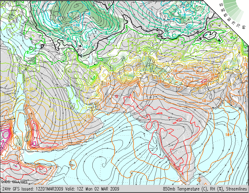 الرياح غدآ في الطبقه المنخفضه 850 شماليه بوجهآ عام على الوسطى والشرقيه وأجزاء من الغربيه
