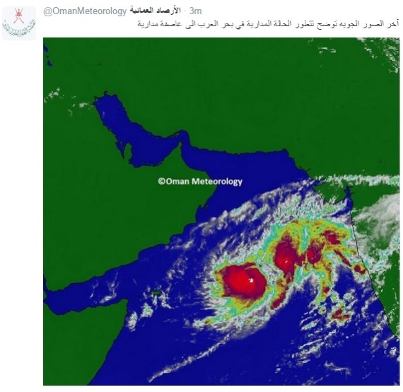 وكالة NOAA تطلق مسمى FOUR على الاظطراب الذي يعيشه بحر العرب حالياً وتصنفه تحت التصنيف : عاصفة استوائية بسرعة هبات تزيد عن 64 عقدة ![]() وتضع مساراً له : ![]() حسب المسار قد يصل أثر العاصفة الى السواحل بعد اقل من 70 ساعة . والله أعلم ..