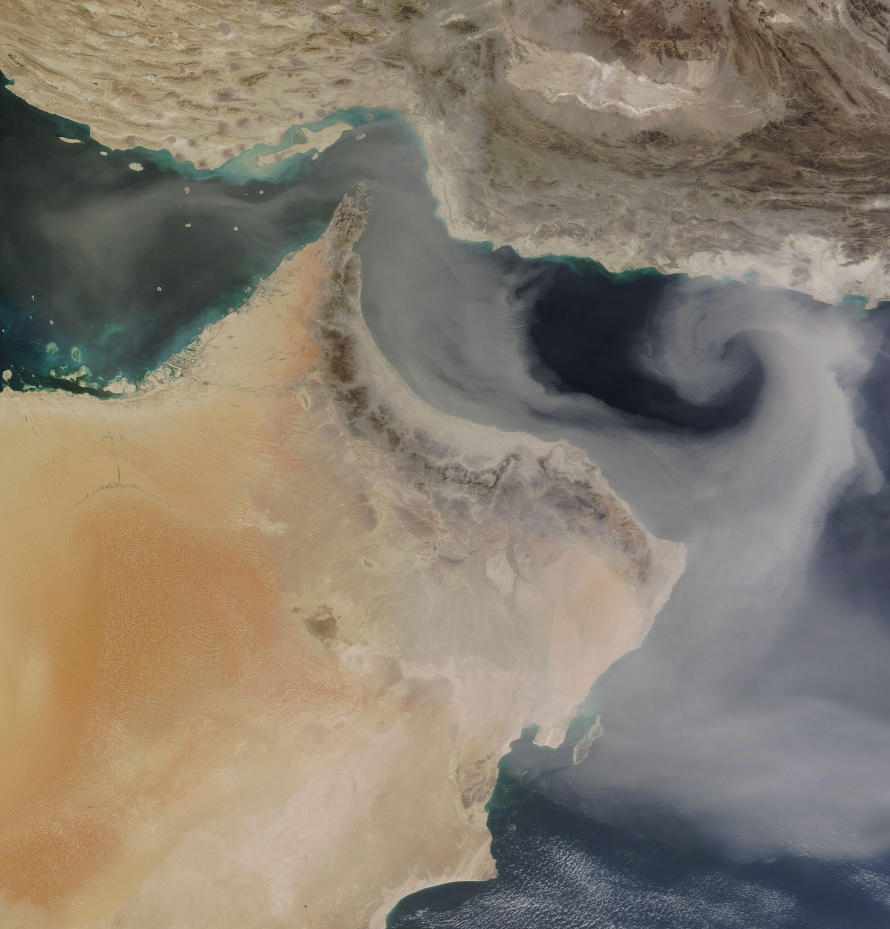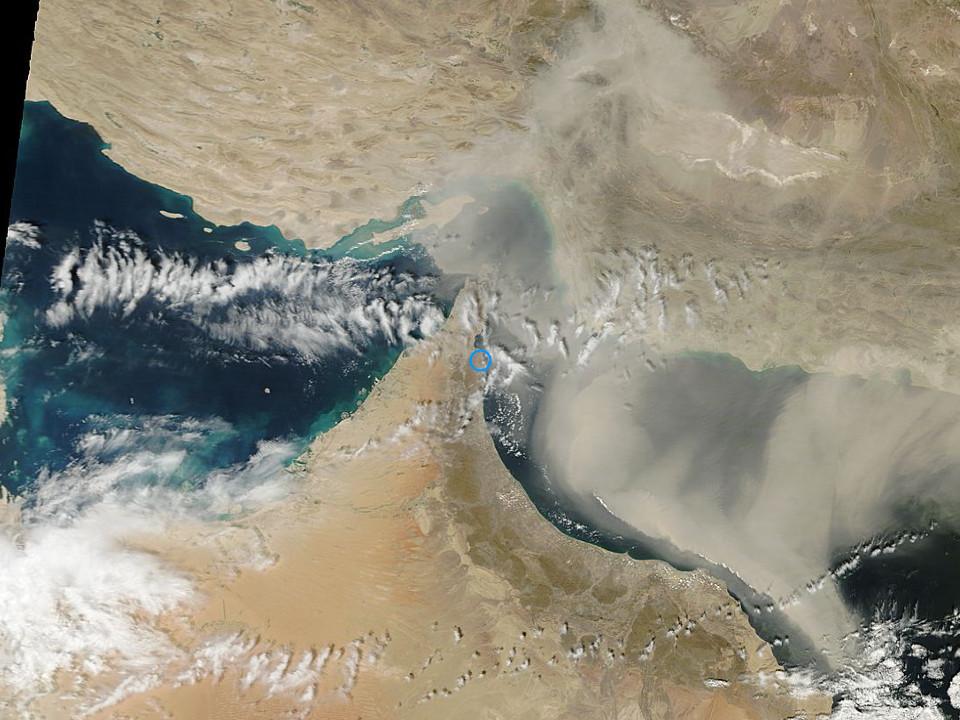 ![]() صور للغبار يوم أمس في خليج عُمان وهي اكبر عاصفه رمليه منذ 2003
