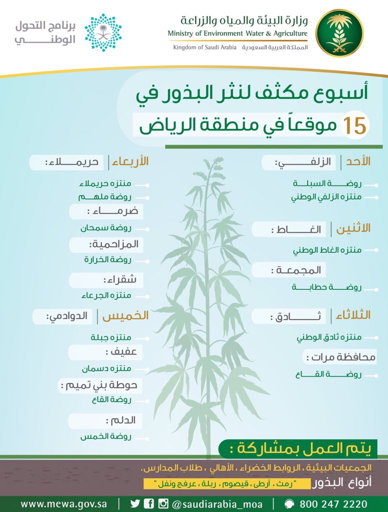 نبي الهمه يا أهل منطقة الرياض موسم مميز و مطير و خصب و شجعوا أبنائكم و أطفالكم و إجعلوهم يشاركون معكم بالزراعة و الفعاليات البيئية فهذا يغرس في قلوبهم حب البيئة و الشجرة تمنيت أن تكون مثل هذه الفعاليات البيئية موجودة بمنطقة مكة !!!! لا أعلم هل المسؤلين بمكة في سبات عميق أم ماذا !!!!! |