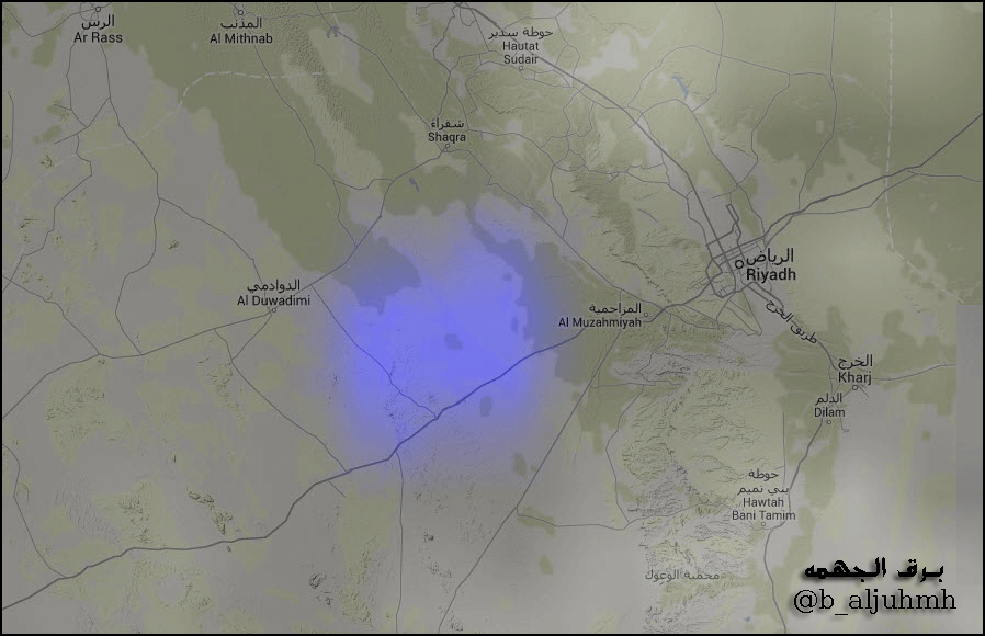 سحابة رعدية غرب الرياض تحديدا القويعية و تم رصد منها اشارات البروق و