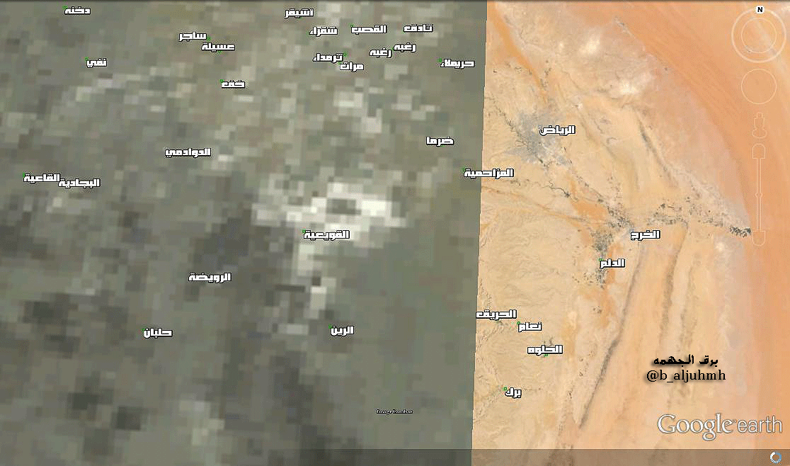 علي المرتفعات وغرب الرياض وشمال شرق الرياض https://webflash.ess.washington.edu/L...eather_map.jpg |