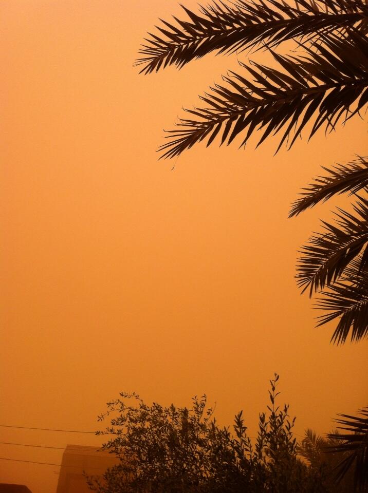 حفرالباطن الان الاجواء اخذت تميل للون البرتقالي وشبه انعدام بالرؤية الافقية |