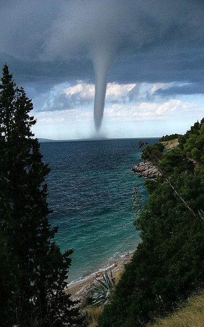 روافع المياه في البحر الأدرياتيكي يحدث الكثير من الظواهر الغريبة على سطح الأرض خاصة هذه الأيام بسبب التغيرات المناخية وهذه إحداها فعندما يضرب البرق في السماء ويعلو صوته وفجأة ترى عمودًا من السماء يضرب سطح المياة في نفس الوقت في مشهد مذهل بالنسبة للكثيرين https://3.bp.blogspot.com/-t6s75U2WqK...om-600x450.jpg كما نرى في الصورة عمود من السحاب يخترق المياه نزولًا فيما يشبه خرطوم الفيل الذي يريد أن يشرب وتم إلتقاط هذه الصورة بين جزيرتي هفار (Hvar) وبراتش (Brach) من على شاطئ مورفيكا (Murvica) https://2.bp.blogspot.com/-6Tt3V_mTF-...0/tornado3.jpg وهذه ليست أول مرة يصاحب البرق عمود من السحاب يضرب سطح الماء وهذا ليس شرطًا لوجود عاصفة حيث نلاحظ أن السماء ليست ملبدة بالغيوم صحيح أن فيها الكثير ولكن توجد مساحات مازالت زرقاء وهذه الظاهرة تعتبر وسيلة لإعادة الطبيعة التوازن لنفسها وتعتمد بشكل كبير على شروط معينة في طبقات الجو العليا https://3.bp.blogspot.com/-JtMlPpLeTC...om-600x450.jpg عندما ننظر في هذه الصورة إلى الغيوم التي تملأ السماء يمكن أن نستنتج أن هذه الظاهرة نتيجة إعصار ما يمر بالمنطقة ولكن تخيل أن في الوقت الذي إلتقطت فيه الصورة لم الجو سيئًا ولم تكن هناك رياح قوة كما يصاحب الأعاصير القوية هذه الظاهرة تعتبر نوعًا من الأعاصير فهذا النوع من الأعاصير يحدث قرب السواحل ويكون الأقل خطورة على الإطلاق ولكن يظل من الأفضل ألا تقترب منه وبمجرد أن تقترب من الشاطئ تتلاشى بسرعة دون أضرارhttps://1.bp.blogspot.com/-jESeqM0UXA...0/tornado5.jpg وهذه الصورة أقرب إلى الظاهرة فمن الوهلة الأولى ترى وكأن الغيوم تنزل من السماء في دوران يشبه الإعصار ليضرب سطح الماء بحيث يمتص المياه من البحر داخل الدوران ولكن في الحقيقة أن الماء لا يُمتص ولكنه نتيجة الدوران يدور معها الماء ويتصاعد بشكل ما على شكل قمع تخيل أن السمك إن وقع مجال هذا الإعصار أنه يرتفع مع الماء في الهواء ونتيجة تصاعد المياه بهذا الشكل تزداد الرطوبة حول هذه المنطقة وقام بعض العلماء بمحاولة قياس سرعة الرياح داخل الإعصار فوجودوا أنها تبلغ من 15 إلى 85 متر في الثانية مما يجعلها من الأعاصير الضعيفة نرى في هذه الصورة الهدوء الذي يسبق العاصفة وفجأة يحدث الإتصال بين السماء ومياه البحر في نفس اللحظة تجد الأمطار بدأت تتكون والرطوبة في الجو أصبح عالية وتجد صعوبة في التنفس |