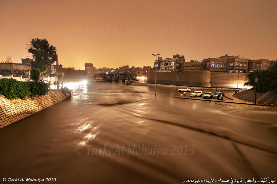 السلام عليكم ورحمة الله وبركاته الحمد لله حمداً كثيراً طيباً مباركاً ... من كان يتوقع هذا الخير العظيم الذي حلّ بنا مساء الأربعاء 8 مايو 2013م أجواء جافة نهاراً .. وغبار كثيف يتربص بصنعاء من الجهة الشرقية.. لنشاهد لحظات تقدم الغبار الهائل إلى صنعاء من الجهة الجنوبية الشرقية .. مع رطوبة محسوسة وسحب منخفضة .. https://pbs.twimg.com/media/BJw_nBmCcAAEWDu.jpg:large انخفضت الرؤية الأفقية بشكل كبير في صنعاء وغابت الشمس قبل وقتها... https://pbs.twimg.com/media/BJxA5z2CEAAufQN.jpg:large الأمطار تهطل بغزارة.. وتهاوي جدار الغبار الكثيف ولله الحمد.. https://pbs.twimg.com/media/BJxCUOjCIAERrpm.jpg:large مع أذان المغرب انفجرت السحب الرعدية الممطرة فوق صنعاء وهطلت الأمطار بغزارة ولله الحمد https://pbs.twimg.com/media/BJxBn3PCUAEYgI5.jpg:large سيول كثيفة ولله الحمد بعد صلاة المغرب https://pbs.twimg.com/media/BJxC4ksCEAAqZO6.jpg:large لأمواج المتلاطمة في شوارع صنعاء بعد الأمطار الرعدية الغزيرة.. مشهد يتكرر في مواسم الأمطار ولله الحمد https://pbs.twimg.com/media/BJxDkccCYAAoiIo.jpg:large سيول هادرة في شوارع صنعاء بعد أن منَّ الله علينا بالأمطار الغزيرة التي غسلت العاصفة الغبارية https://pbs.twimg.com/media/BJxEKCPCIAAREOp.jpg:large سيول الأمطار تتدفق بقوة بعد الأمطار الغزيرة https://pbs.twimg.com/media/BJxFBWKCUAAetS0.jpg:large لك الحمد يارب .. من كان يتوقع كل هذا الخير؟! https://pbs.twimg.com/media/BJxFygPCEAA-eYl.jpg:large دأت السيول تتدفق على سائلة صنعاء ولله الحمد .. صورة للسيول في بدايتها .. https://pbs.twimg.com/media/BJxGk7SCIAA654D.jpg:large زداد منسوب السيل وانطفأت الكهرباء! لكني استخدمت التعريض الطويل والتقطت هذه الصورة في الظلام الدامس! https://pbs.twimg.com/media/BJxIIhQCEAAzf4v.jpg:large انتهى التقرير، لكن الخير لا ينتهي بإذن الله ... نراكم في تقارير قادمة بين المطر والبرَد والسيول .. محبكم.. تركي المحيا https://twitter.com/TurkiAlmohaiya صنعاء - اليمن . |