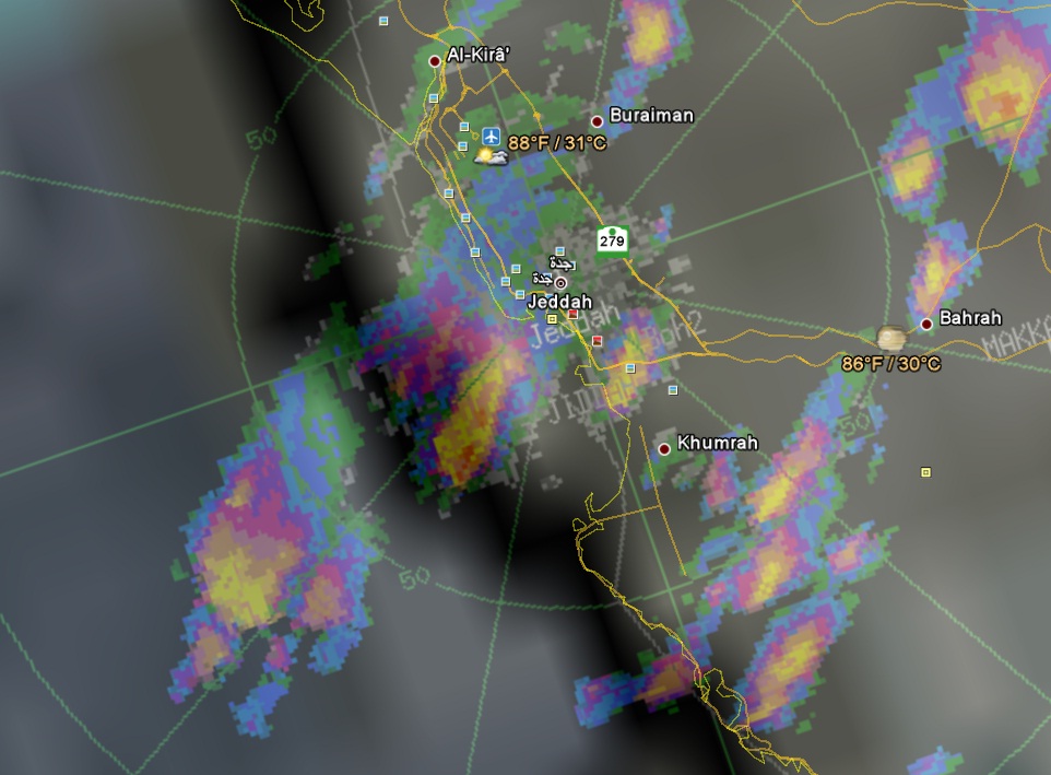 لذا الأمطار حاضره بحول الله وتوفيقه على كلاً من منطقة عسير والباحه والمنطقه الغربيه الطائف مكه جده والليث