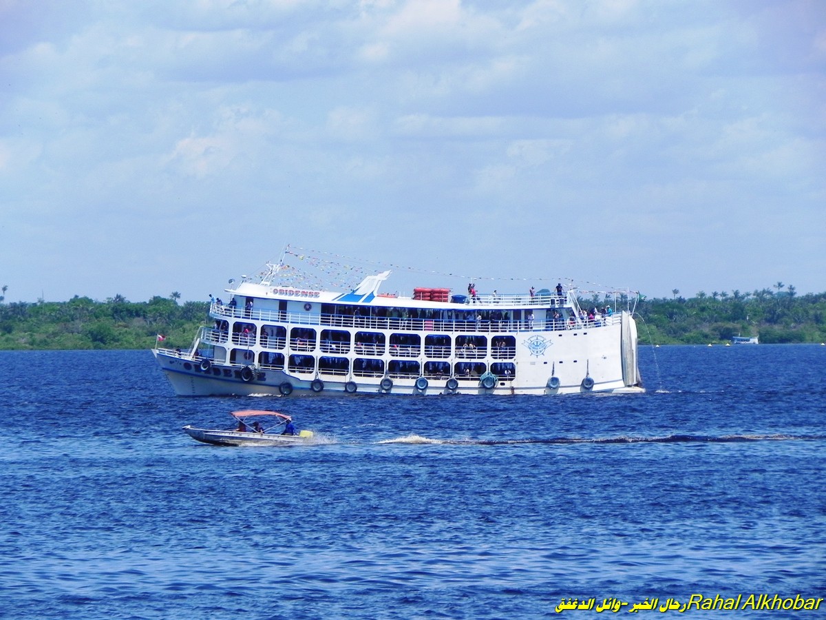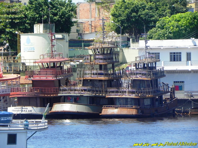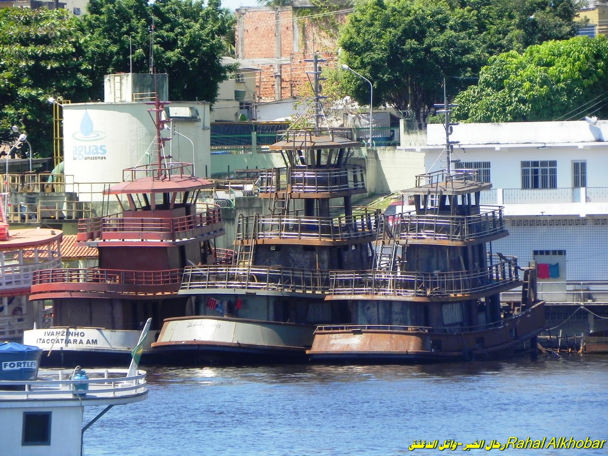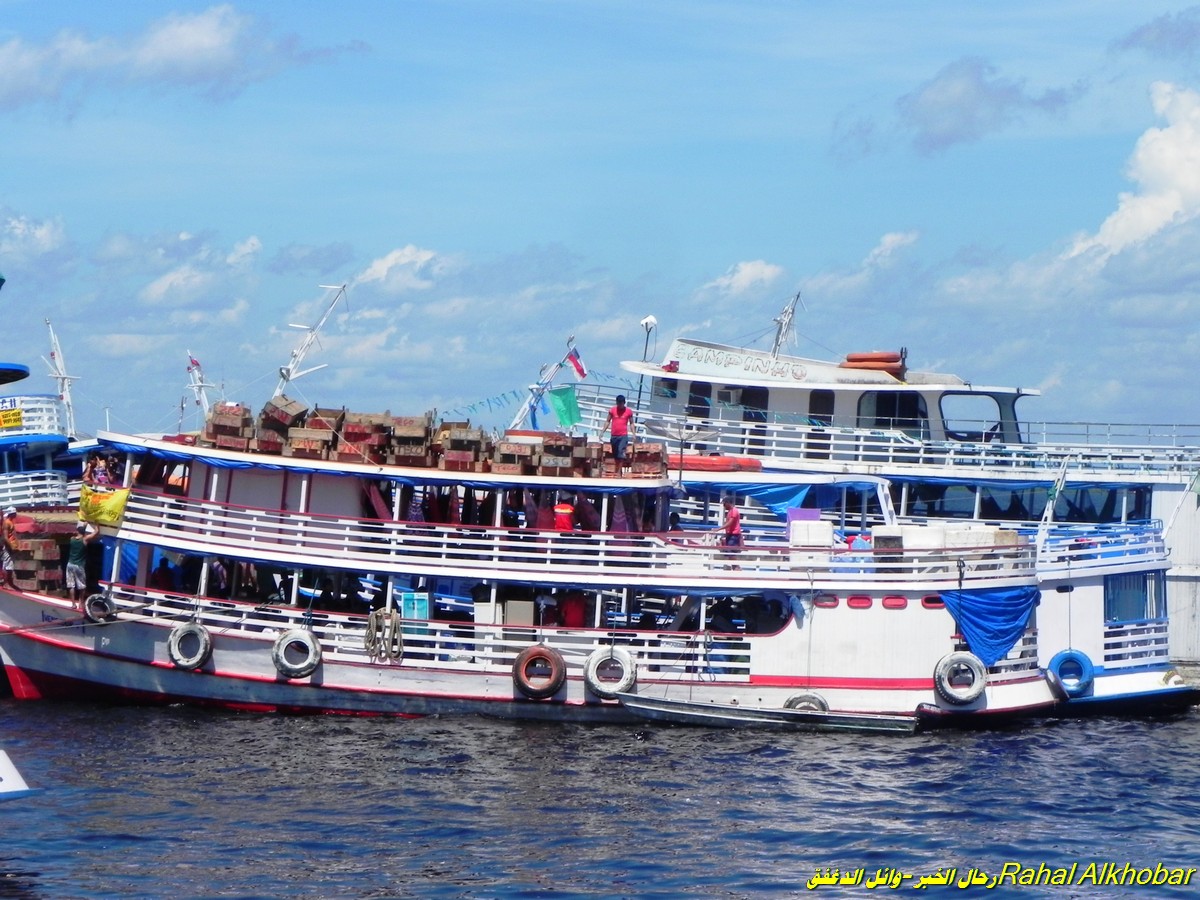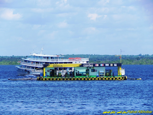 ومن المشاهدات التي رأيت وسط نهر الامازون تلك المحطات في وسط النهر وهي تعتبر محطات للتغذية بالوقود للسفن العابرة والتي لا تتوقف في المدينة بل تتخذها محطة لتعبئة الوقود والماء وإنزال بعض المسافرين لتنقلهم بعد ذلك بقوارب صغيرة للميناء بحيث لا تتأخر السفينة المحملة بالناس بالدخول للميناء والتوقف وهي كبيرة الحجم وتاخذ المكان والوقت الكثير .
