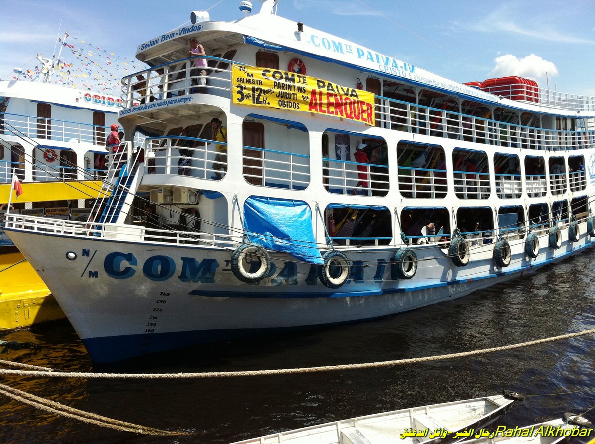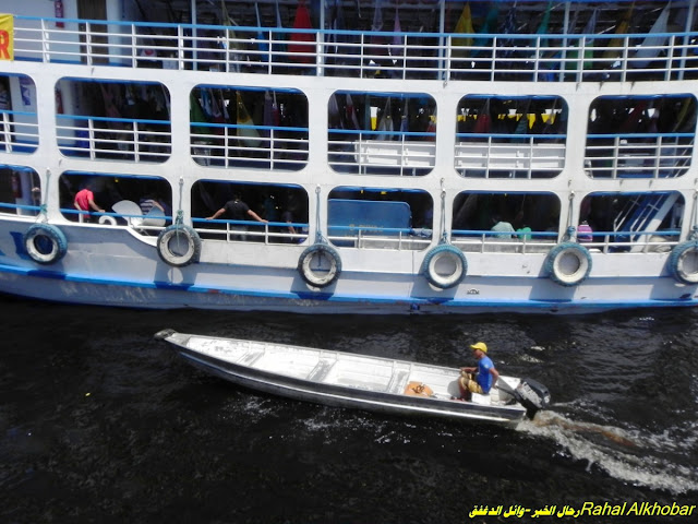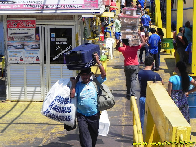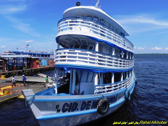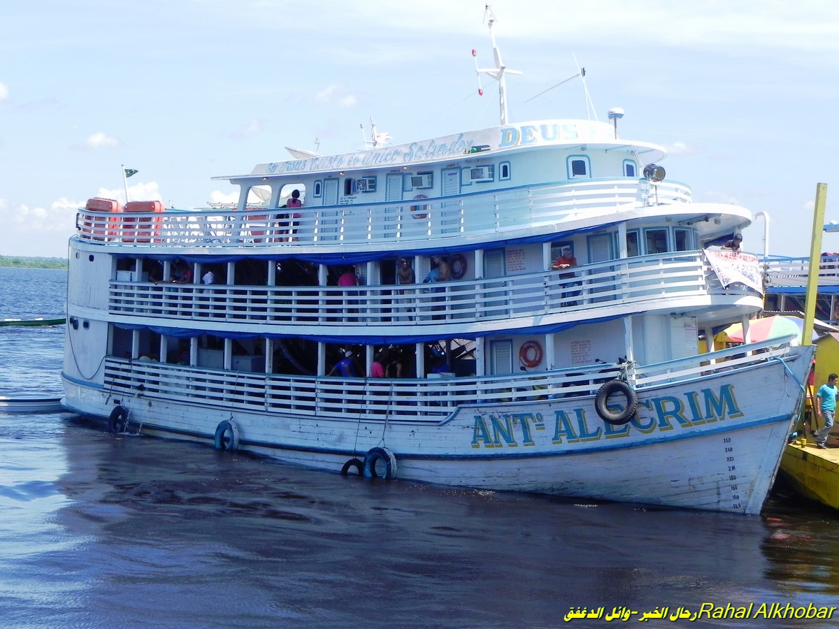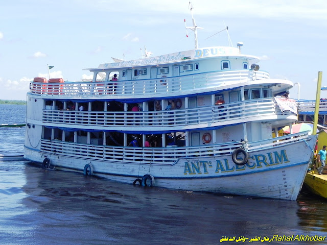 ومن المشاهدات التي رأيت وسط نهر الامازون تلك المحطات في وسط النهر وهي تعتبر محطات للتغذية بالوقود للسفن العابرة والتي لا تتوقف في المدينة بل تتخذها محطة لتعبئة الوقود والماء وإنزال بعض المسافرين لتنقلهم بعد ذلك بقوارب صغيرة للميناء بحيث لا تتأخر السفينة المحملة بالناس بالدخول للميناء والتوقف وهي كبيرة الحجم وتاخذ المكان والوقت الكثير .