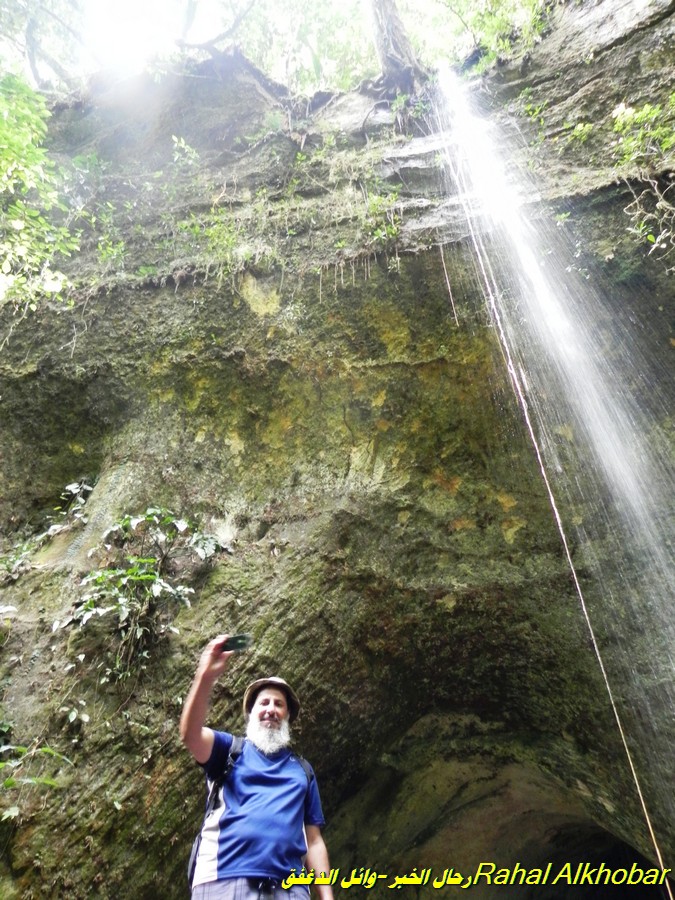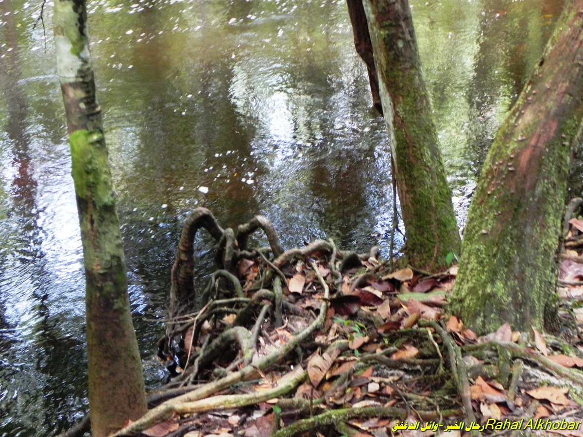 دخولنا أحد الكهوف وخروجنا من جهة أخرى: في منطقة الكهوف في التلال والبحيرات وفي مسيرنا خلال اليوم الاول وجدنا أحد الكهوف الكبيرة والمتسعة ، فقد كان مدخل الكهف يرتفع لعلو سبعة أمتار وعرض ثمانية أمتار تقريبا وهو متكون من جريان المياه من الجهة الاخرى التي سنسير أليها عبر هذا الكهف الضخم ، ومازال جريان الماء ولو أنه قليل وبسيط ولو كان أكبر من ذلك لما أستطعنا الدخول البتة. كان أول الولوج أليه أن سرنا مسافة عشرة أمتار وعندها تفرع لفرعين كبير وصغير ووجهتنا للكبير ولكنني وجدت الصغير به حركة من طيور الخفافيش مما استدعاني للدخول لتصويرها . كهوف تكوّنت بجريان المياه المستمرة. ووجدت في الفوهة الاصغر ضالتي ، بعض الخفافيش الصغيرة الحجم وهي متعلقة في قمة الكهف ولم أستطع النظر اليها لشدة الضلام ولكن كان فلاش الكاميرا مباغتاً لها بحيث استطعت أن أصطادها فوراً وقبل أن تجفل وتهرب . ![]() تجاويف متعددة ومتاهات داخل هذه الكهوف. ![]() ظلام دامس وتجاويف عجيبة. وكانت الممرات الداخلية للكهف ملئى بالمياه الجارية وتعرجات وأنحنائات كثيرة صنعت بفعل المياه التي تأتي من موسم الفيضان وشدة الامطار فشكلت هذه الكهوف التي تعتبر ملاذا لولا الخوف من سيل عارم يزيل كل من بداخل الكهف . وأستمر مسيرنا نحو الساعة إلا قليلا لنجد ضوء في ناحة أخرى من الكهف وهي ليست الوحيدة فتفرعات تلك الكهوف وتعددها يجعل الجديد عليها في متاهة لايجد لها مخرجاً ، لكن لوجود المرشد العارف بطرقها ومساراتها أختصر علينا الكثير ولله الحمد . ![]() كهوف تمتد لمئات الامتار لتخرج من جهة أخرى. ولعل من الغرابة وجود الرمال الحمراء المنحوتة من الحتّ في تجاويف الكهف ولا أدري ماهو نوع التربة الحمراء الغريبة وكأنها دماء انتشرت في الارض بشكل كثيف. ![]() مخرج بعد مسير نصف ساعة في ظلام حالك وبمساعدة الأنوار ![]() دخول أحد التجاويف ![]() صور للخفافيش صغيرة الحجم تعيش هنا(متعلقة في سقف الكهف) ![]() والهواء داخل الكهوف منعش نتيجة التيار بين الفتحات ![]() في الداخل غرف وصالات وسكون قاتل ولا انسى أن أذكر في مسيرنا خلال التعرجات داخل تلك الكهوف المتسعة كانت تلاقينا بين فترة وأخرى فتحات تهوية ومناور وسط الكهف وربما هي خفس نتيجة تآكل التربة وجعلت للكهف مداخل سطحية غير التي دخلنا منها وهي على مستوى الارض . ![]() تجاويف ذات فتحات تنير الكهوف (منور طبيعي) ![]() بعض المخارج يكشف عن أمكنة بديعة والأخرى عن هوة وجورف خطرة ![]() وتستمر التشكيلات البديعة للكهوف بألوان حمراء وبيضاء . ![]() في أحد مخارج الكهوف بعد جولة أستمرت ساعة تقريبا. ![]() صور للذكرى ![]() وخروجنا من المنطقة للإتجاه نحو الحياة المزعجة من شدة الرطوبة بالغابة ينبت الفطر بكل مكان زيارتنا لأحد قرى القبائل الامازونية: اليوم كان لنا لقاء في أحد مستوطنات لقبائل الأمازون التي رأينا فيها طبيعة تعايشهم وطريقة حياتهم التي حتما تحمل كل غريب وعجيب. المستوطنة كانت عبارة عن مساحة مرتفعة قليلا عن الأراضي الرطبة وهي على مساحة تقريبا 100 متر قطر دائري وبنيت حولها أعشاش من الخشب المكسو بسعف النخيل الأمازوني الطويل السعف وهذه طريقة من طرق القرى وهناك تصميم آخر على شكل خط وتتابع العشش بالطول . وربما هذه القرية تعتبر مزارا مستمرا للسياح نظرا لأستعدادهم لنا ولو انهم في الحقيقة من السكان الاصليين لكن متفقين مع المرشدين بالزيارة وتعريف الزوار بحياتهم مقابل مايعطونهم من مواد غذائية وحوائج يتبادلون فيها نظير مايقومون باستقبال للزوار. ![]() عائلة من سكان الأمازون وهم عراة إلا ستر العورة بحبال واوراق النباتات ![]() يمارسون المصارعة كنوع من الرياضة عادات غريبة وعجيبة: لدى سكان الامازون وباختلاف قبائلهم تنوع في العادات ومنها حينما يموت أحدهم في بعض القبائل يقيمون الأفراح والاتراح ويطوفون بالجثة فرحاً بموته فقد أنتقل لدار أخرى ويستمرون بذلك إلا ان يضعوا الجثة في قدر ليطبخوه ويقطعوه وتوزع لومه إلى كل القبيلة بل أنه يتشارك بعض القبائل الأخرى بأن يرسل