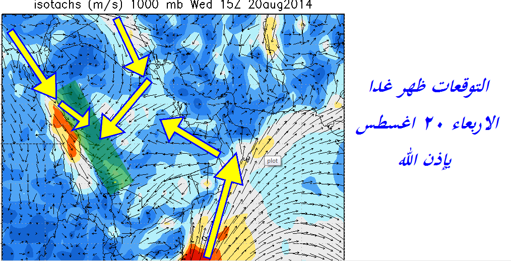 السلام عليكم ورحمة الله وبركاته اسعد الله مسائكم بالخيرات والمسرات ـــــــــــــــــــــــــــــــــــــ بمشيئة الله تعالى ستنشأ حالة جوية ممطرة تضاريسية طيبة جدا من يوم غدا الاربعاء 20 اغسطس ــــــــــــــــــــــــــــــــــــــــــ نشاط موجات تبريد علوي بسيط ولابأس به يعبر ويؤثر على المرتفعات الجبلية هذه المؤثرات العلوية النشطة والجميلة بإذن الله تعالى ستعمل على تحريك وتفاعل المنخفض الموسمي السطحي وهبوب رياح شرقية رائعة على طول المرتفعات من جازان وصولا لمرتفعات تبوك بإذن الله وتوفر لابأس به للرطوبة بالطبقة البنائية بإذن الله تعالى توقعات الامطار : جازان وعسير والباحة والطائف ومكة والمدينة ومرتفعات تبوك كذلك الفرصة جيدة لمنطقة حائل والمنطقة الوسطى والرياض وغربها بإذن الله تعالى خريطة مدمجة للضغطين العلوي والسطحي ظهيرة غدا الاربعاء بإذن الله ![]() خريطة الرياح السطحية ظهيرة غدا الاربعاء بإذن الله ![]() والله تعالى اعلم واحكم ومتفائلين بواقع خير افضل التوقعات إن شاء الله