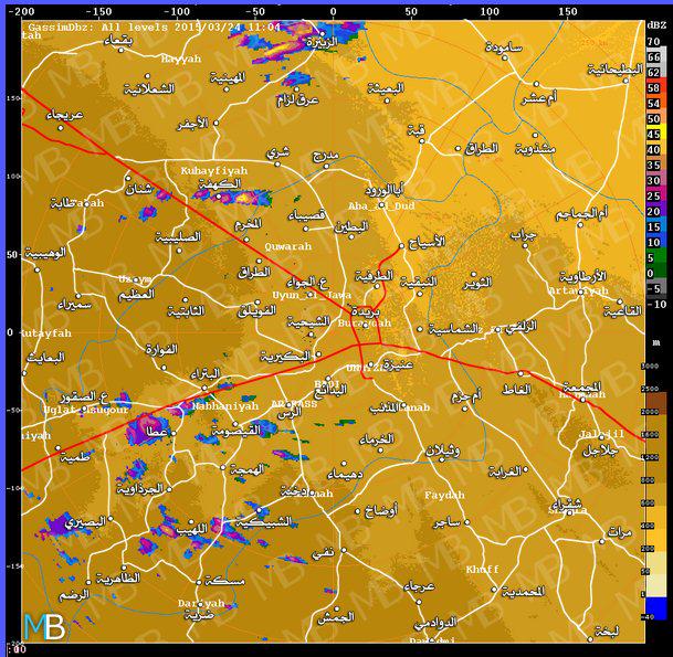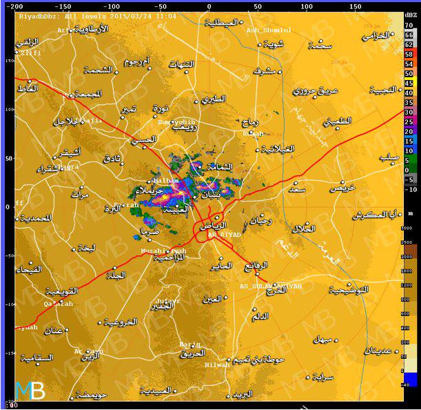 ردار الرياض ونشاط جيد شمال الى شمال غرب مدينة الرياض ![]() ردار الدوادمي ![]() ردار القصيم ![]()