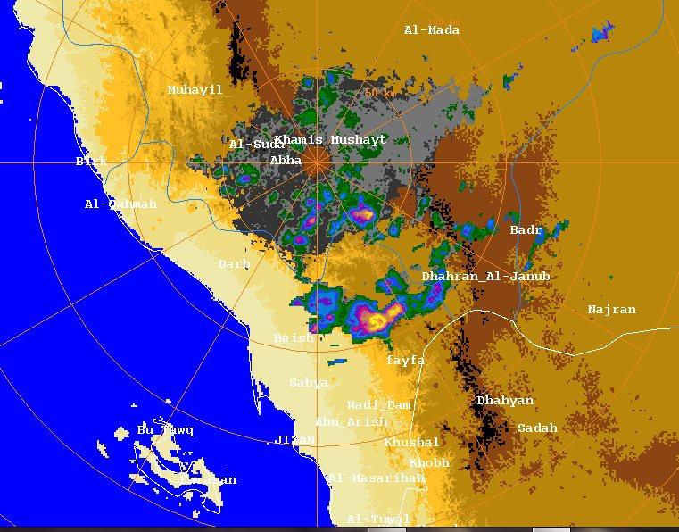 السحب في اخر تحديث سحابة طيبة شرق وشمال شرق منطقة جازان وسحابة اخرى جنوب ابها ![]() ردار ابها في اخر تحديث ويرصد بعض التطورات المتفرقة جنوب ابها والافضل شرق منطقة جازان ![]()
