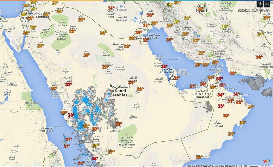 الحرارة المتوقعة لهذا اليوم الاربعاء اجواء صيفية كالعادة بإستثناء المصائف ودرجات حرارة في اوائل الاربعينات تنخفض قليلا الى اواخر الثلاثينيات على شمال غرب المملكة والاعلا حرارة متوقعة المنطقة الشرقية ومنطقة مكة المكرمة وخاصة الاجزاء الغربية من منطقة مكة وقد تصل الحرارة الى منتصف الاربعيتات خريطة درجات الحرارة ![]() والله اعلم