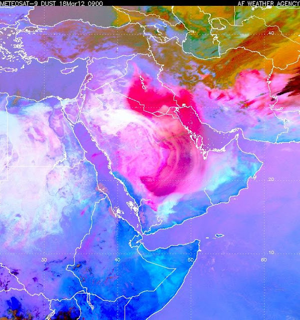 هذه العاصفة التي كانت في اخر مارس وبعدها انزاحت الكتلة الجافة ودخلت كتلة رطبة مترافقة مع نشاط للمنخفض الحراري والله اعلم